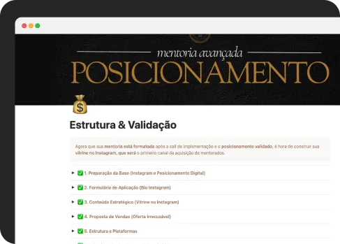 Uma mentoria estruturada, que entrega resultado real e gera autoridade.