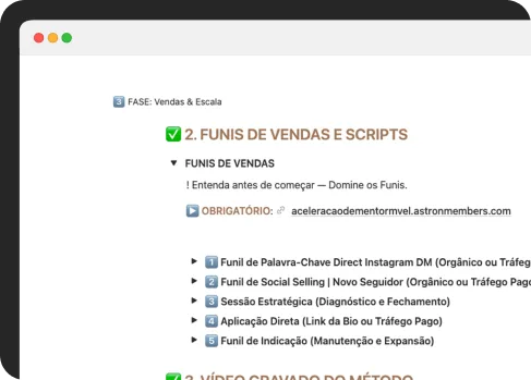 Um método validado e com acompanhamento estratégico para empresários, grandes profissionais e especialistas que querem estruturar e escalar um negócio de mentorias no digital com método, direção e execução, mesmo começando do zero.