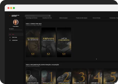 Construir uma mentoria de alto impacto, que gera transformação real, retenção, autoridade e indicações naturais. Aqui o foco não é quantidade de aulas, mas resultado percebido pelo cliente.